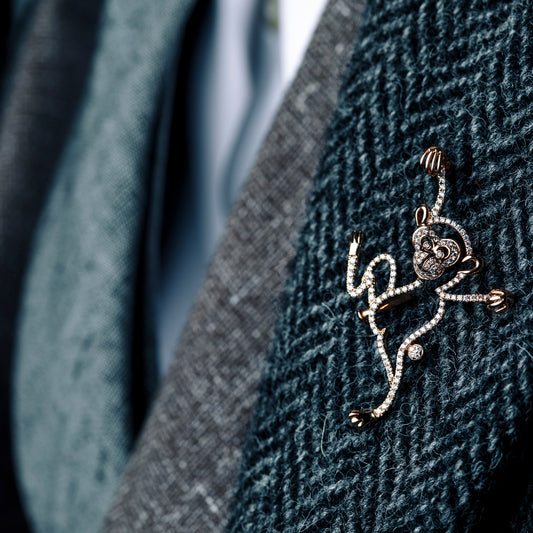 Oliver Heemeyer´s stylishe Neuinterpretation eines Klassikers. Moderne Broschen handgefertigt in unserer Manufaktur aus 18 karätigem Gold und veredelt mit zahlreichen funkelnden Diamanten.