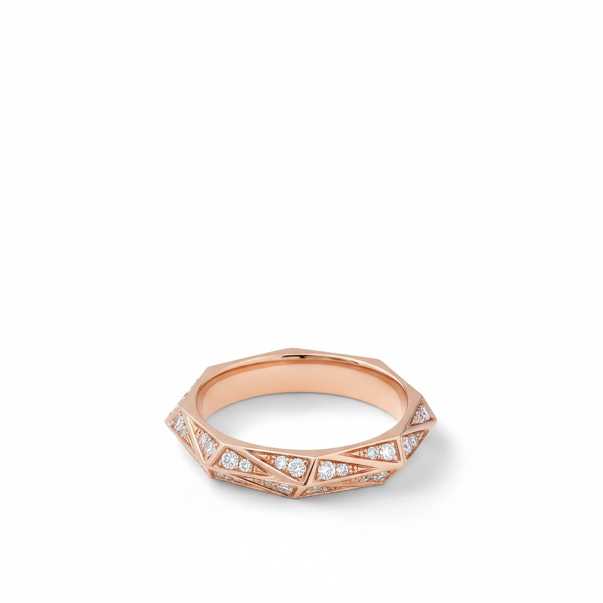 Gefertigt aus glänzendem 750er Roségold, verbindet diese 4 mm breite Ringschiene zeitlose Raffinesse mit modernem Design. Die sorgfältig ausgewählten Edelsteine erzeugen ein leuchtendes Funkeln, das das Licht aus jedem Winkel einfängt. Dies macht den Ring zu einem edlen Statement-Piece für Kenner feiner Handwerkskunst und dauerhafter Eleganz.